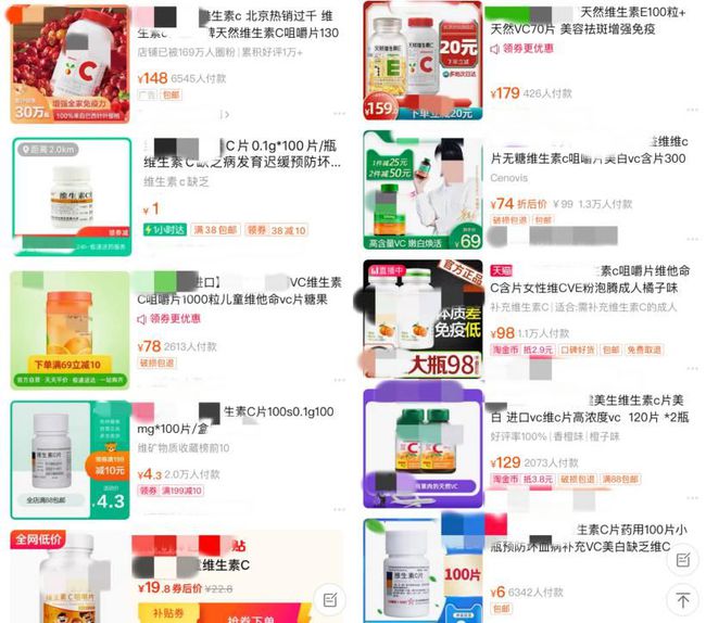 一瓶100片的维生素C保健品,如果每片含0.1g的维生素C,总共的维生素C成本也不会超过五毛钱。当然,产品里的辅料,产品的包装、保存、销售等,一层层加上去,真实的成本也不会高到哪里去。因此,维C的定价才会出现这样的巨大波动。